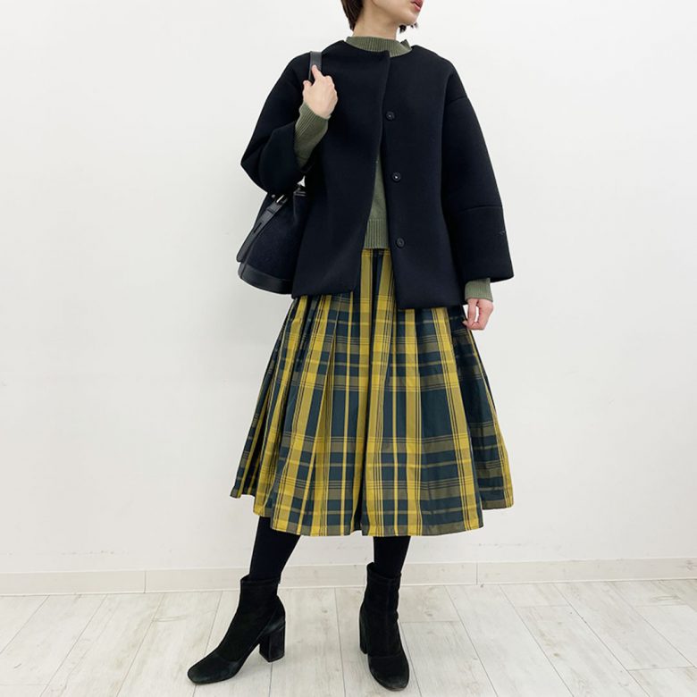 Skirt:神戸・山の手イエローチェックスカート(ミモレ丈) ¥12,100(税込)