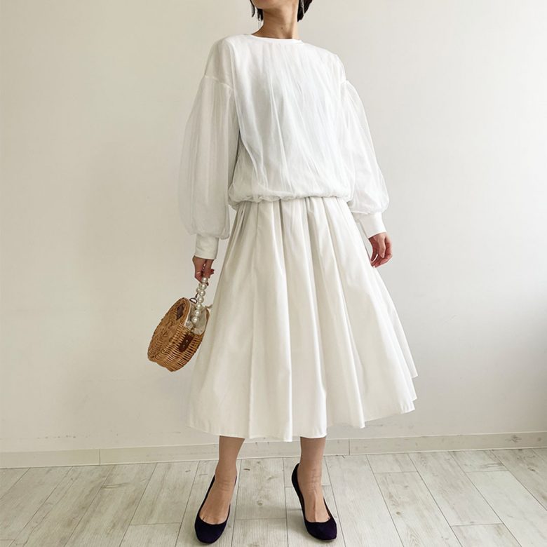 Tops:チュールレイヤードプルオーバー(オフホワイト) ¥8,690(税込)