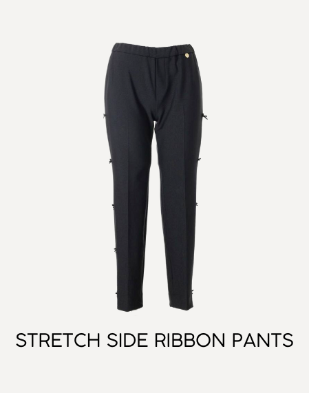 伸縮性&上品さを兼ね備えたストレッチサイドリボンパンツはセレモニーシーンに大活躍!