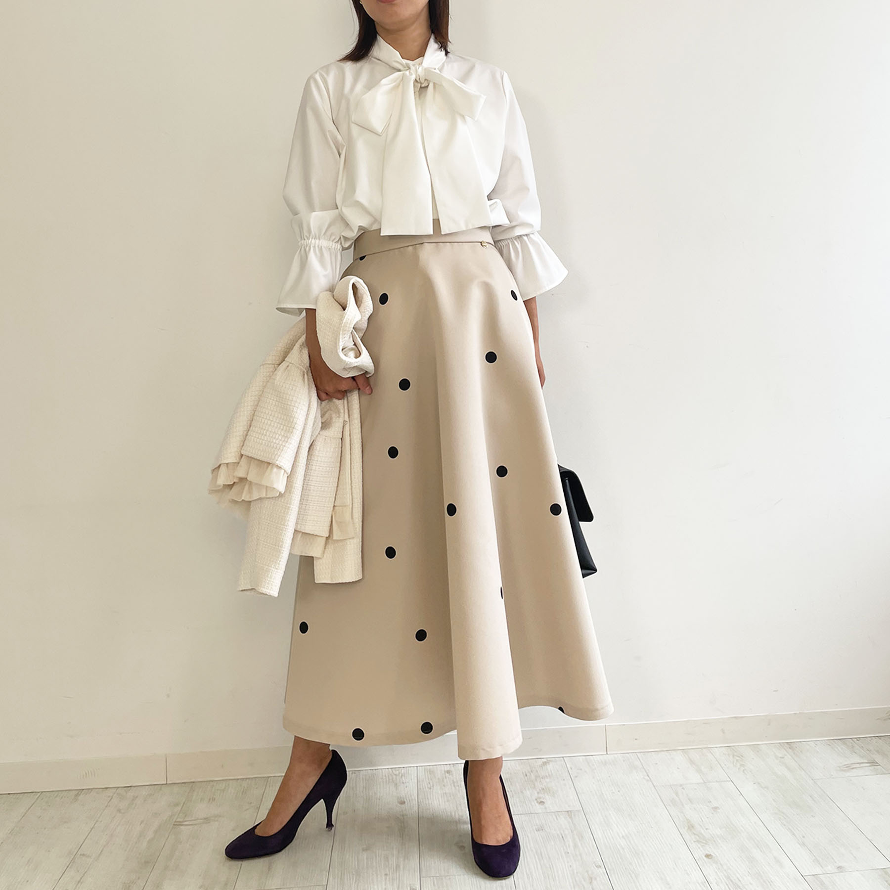 Skirt:ランダムドット撥水フレアスカート ¥18,700(税込)
