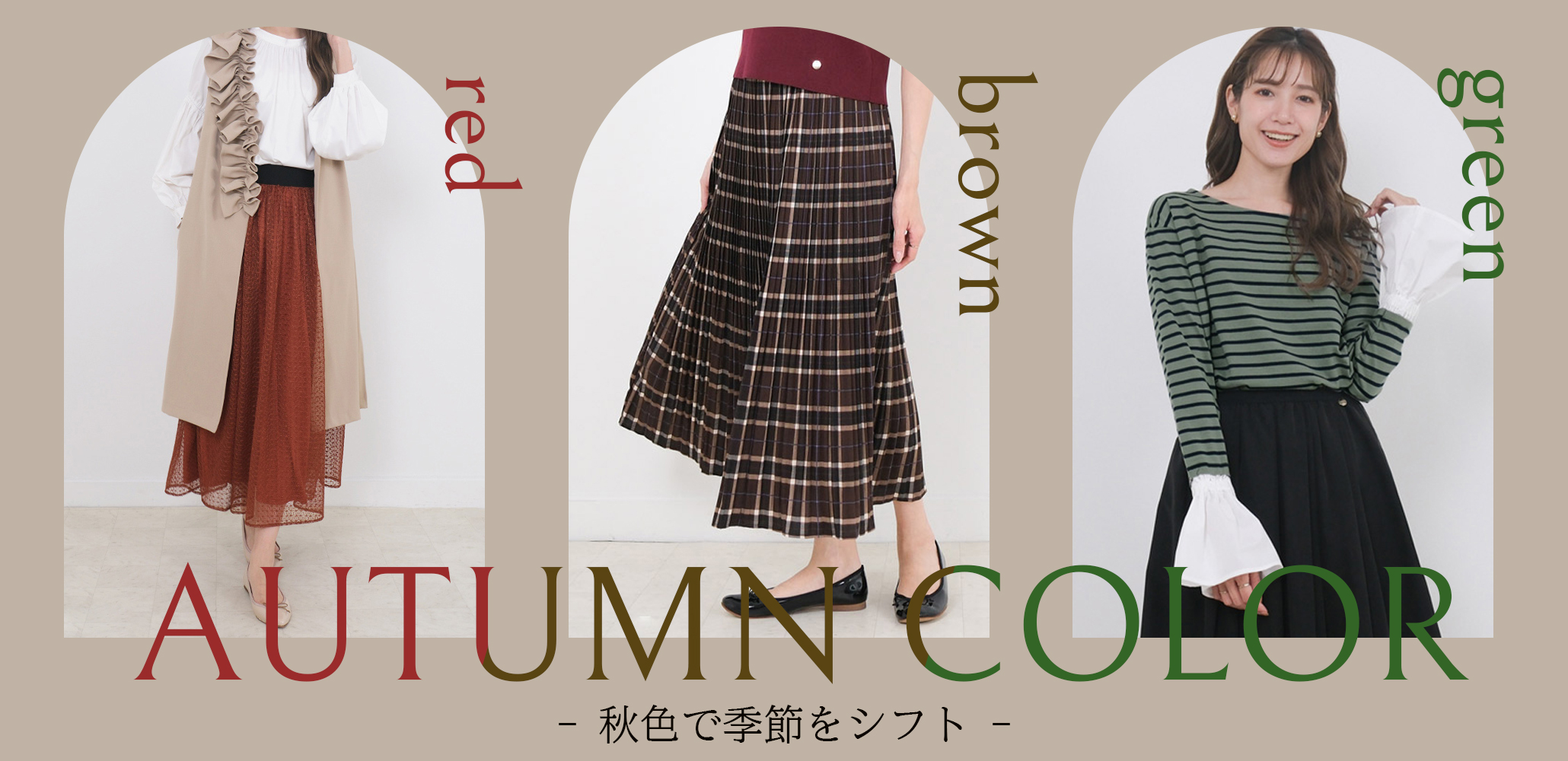 この秋注目したいのは レッド・ブラウン・グリーン の3色。