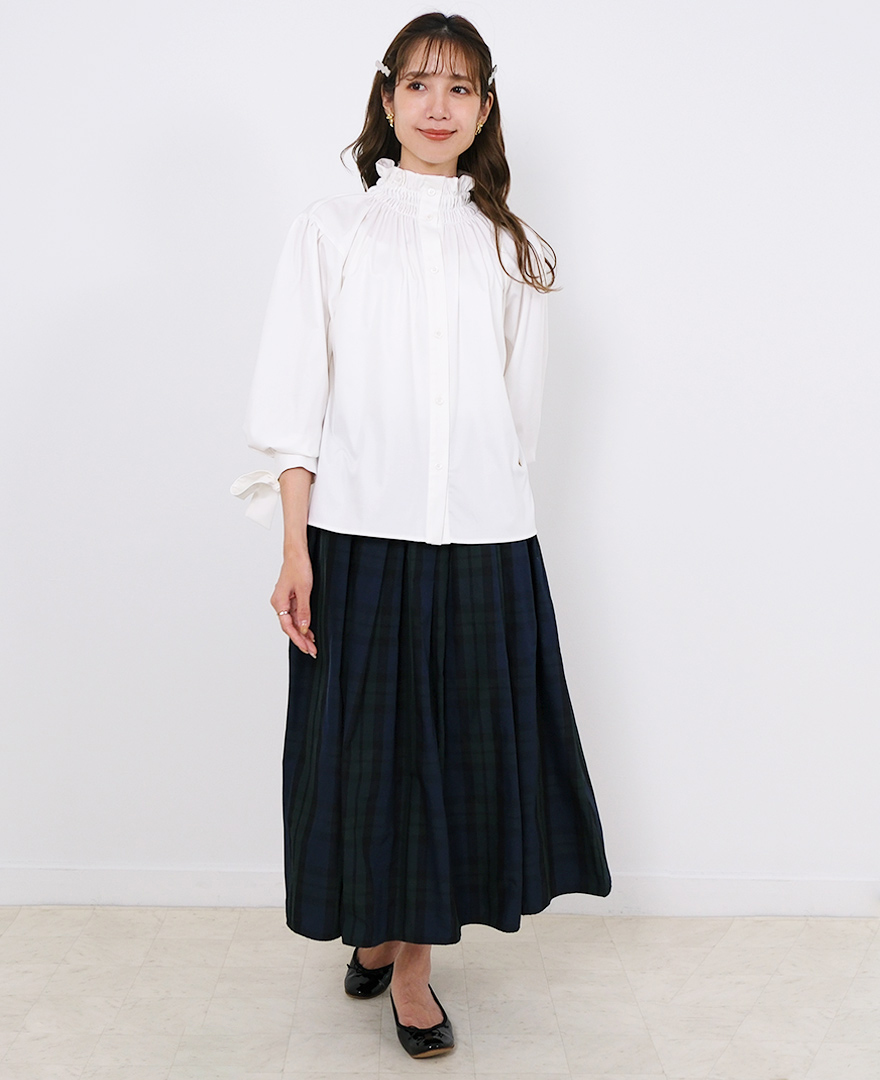 トップス:袖シャーリングブラウス/ホワイト