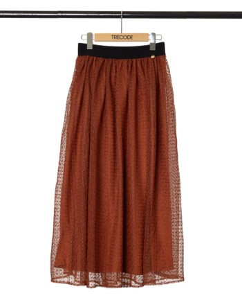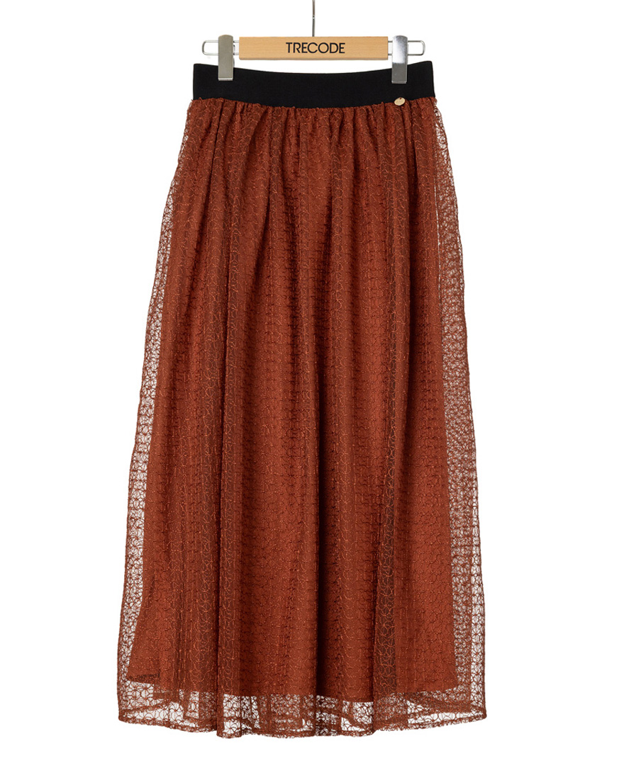テラコッタカラーのスカートは、一枚でぐっと秋らしさをプラスしてくれるアイテム。