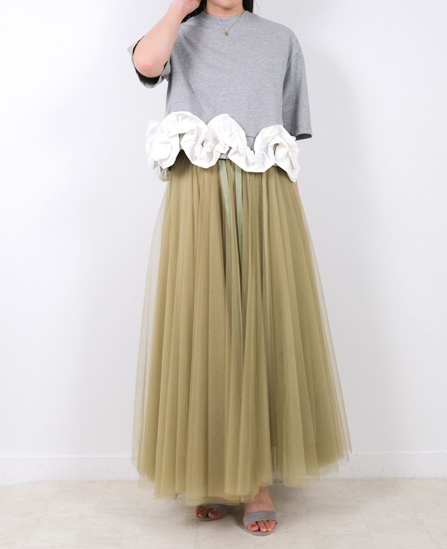 スカート:チュールスカート(マキシ丈)/ベージュ