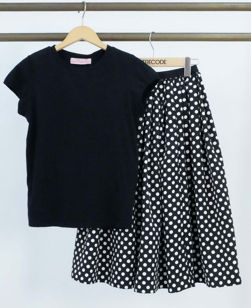 カラートップスとの色合わせも◎ ロングのドット黒Lもかわいいです。