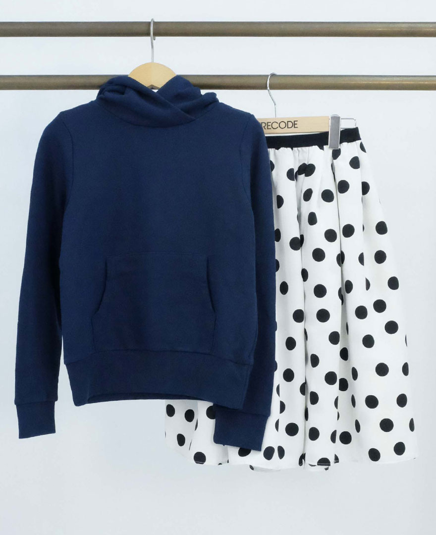 膝下丈のロングはフレッシュに。 ドット小さめの白S。