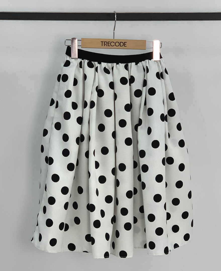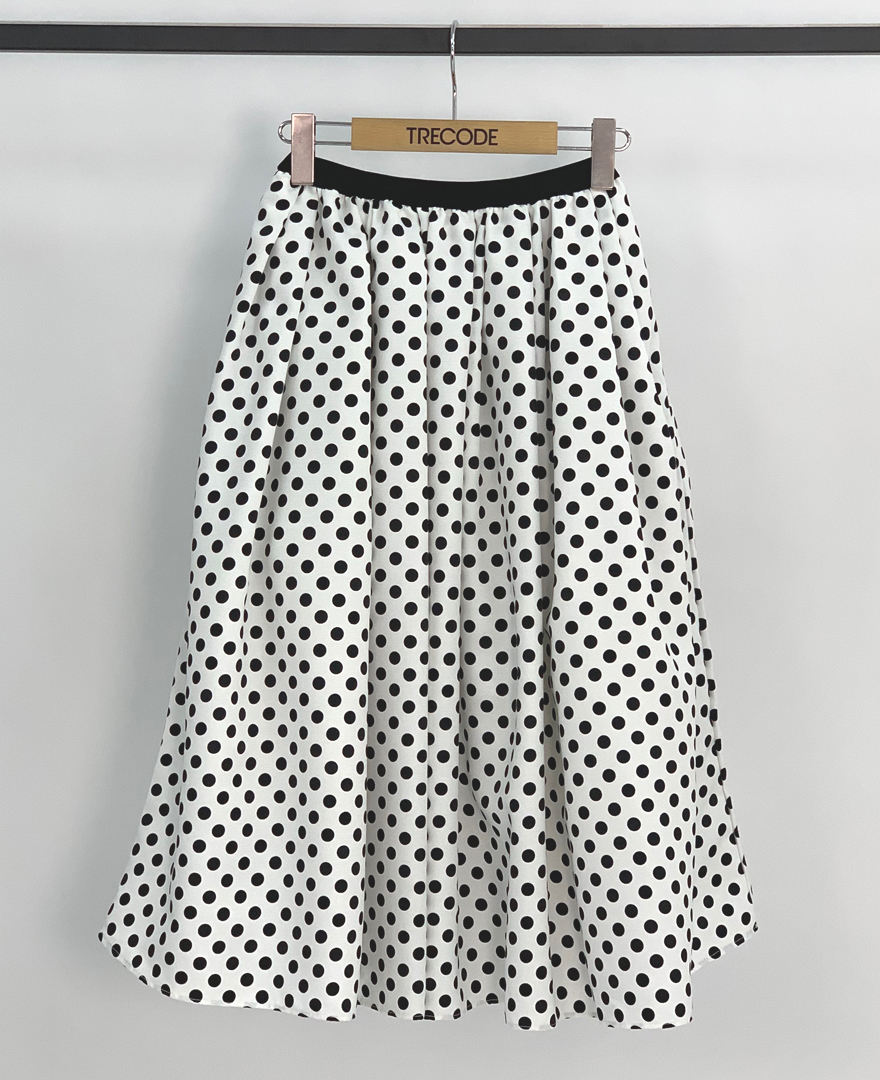 神戸・山の手ドットスカート ミモレ丈<ドット白S>