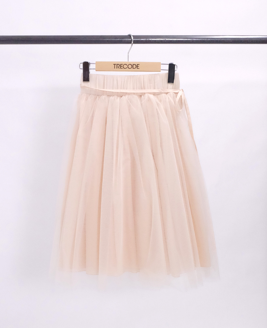 神戸・山の手リバーシブルチュールスカート ロング丈<アイボリー>