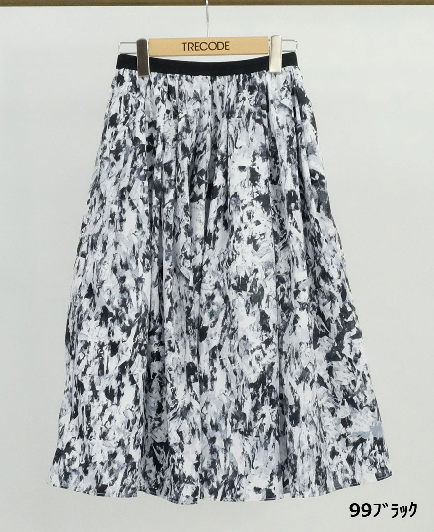 神戸・山の手マーブルスカート ミモレ丈<ブラック>