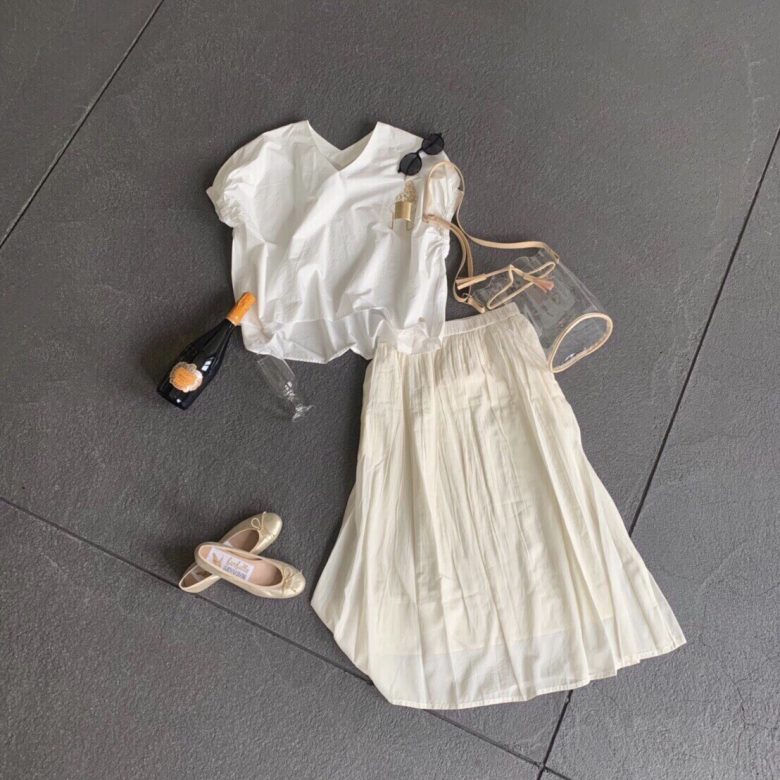 を合わせて、サンセットに映えるホワイトコーデに。