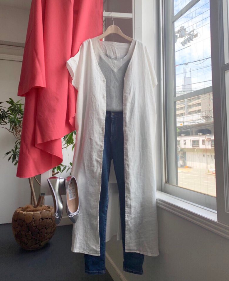 ワンピースでも羽織でも着れる2WAYのフレンチリネン前後V ロングシャツワンピース