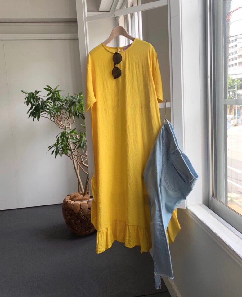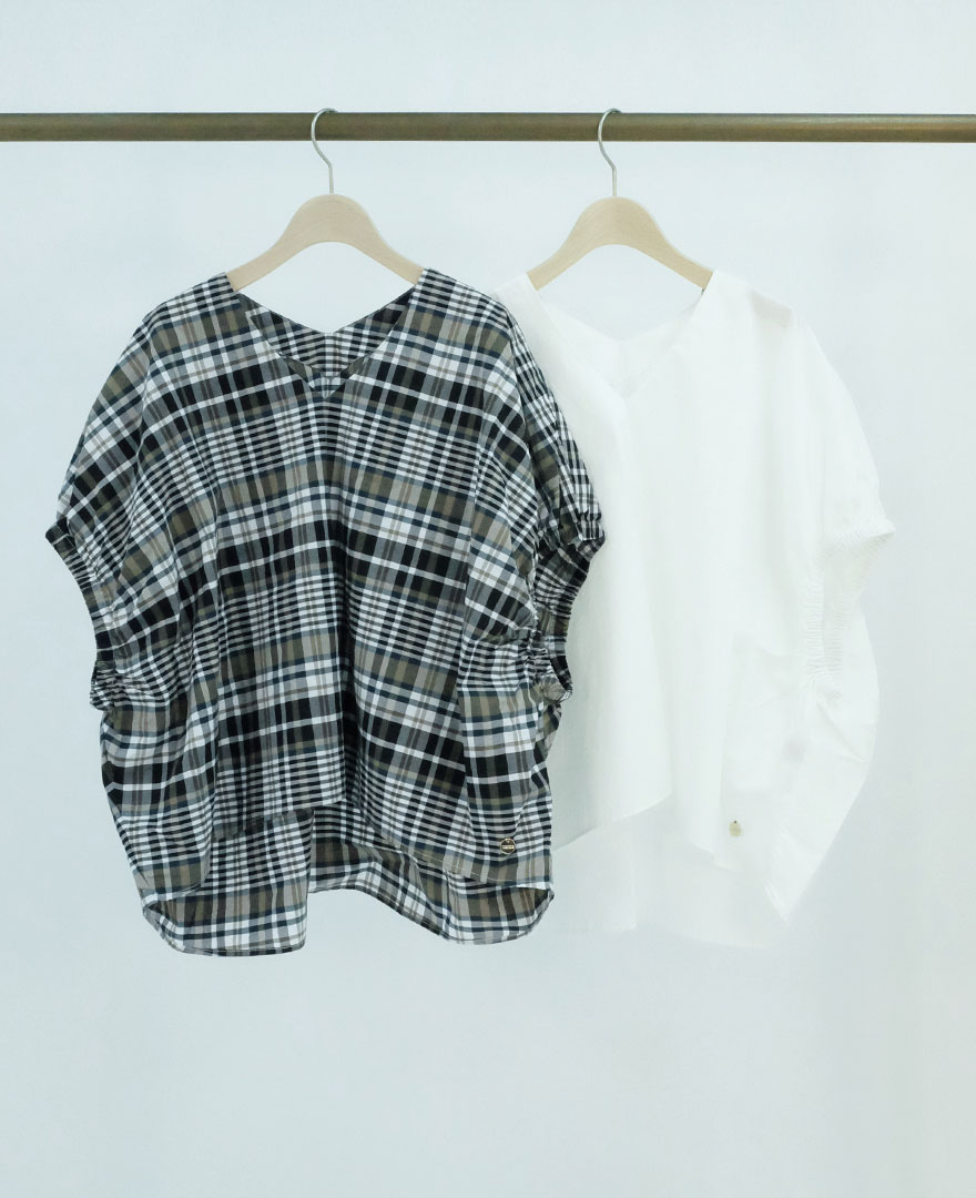 ゆったりしたサイズ感とサイドに入ったスリットで動きやすく、裾にあしらったフリルが品の良さをキープ。