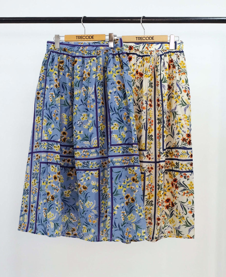 【マークダウン特価】ボタニカル柄インド綿ギャザーマキシスカート