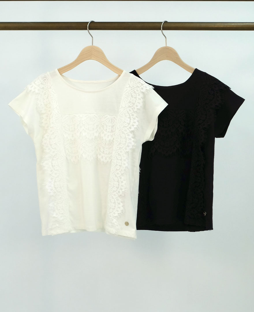 【再マークダウン30%オフ】神戸・山の手フレンチスリーブ レースティーシャツ