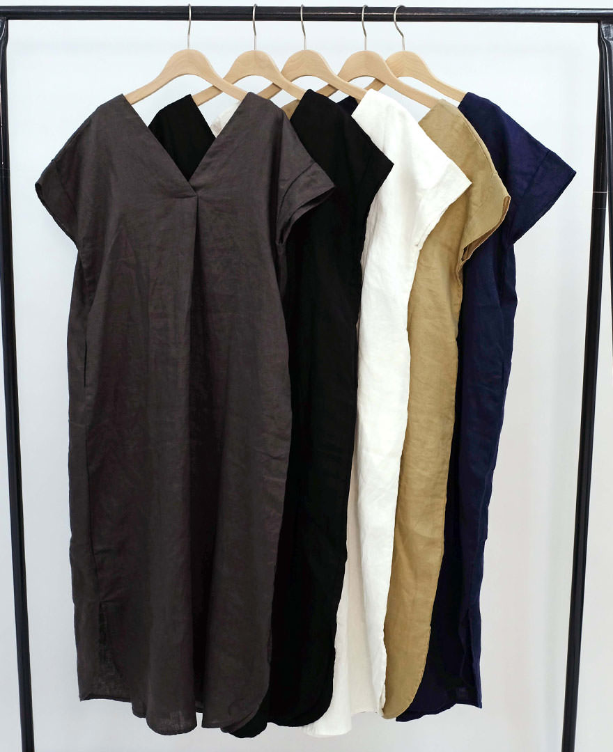 質が良く手触りの優しいフランス産リネンを贅沢に使った、夏らしいシャツワンピです。