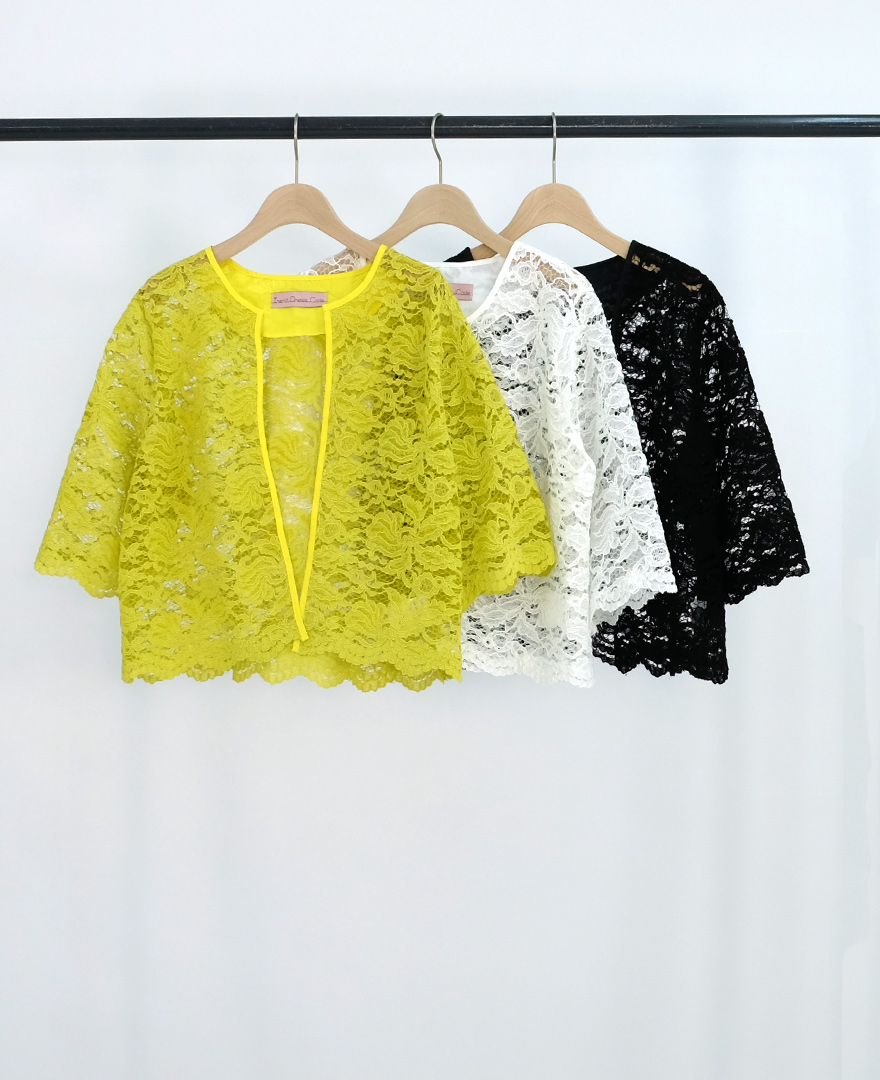 パーティや結婚式などフォーマルなシーンにも活躍する華やかなレースジャケットは、普段使いにも大活躍。