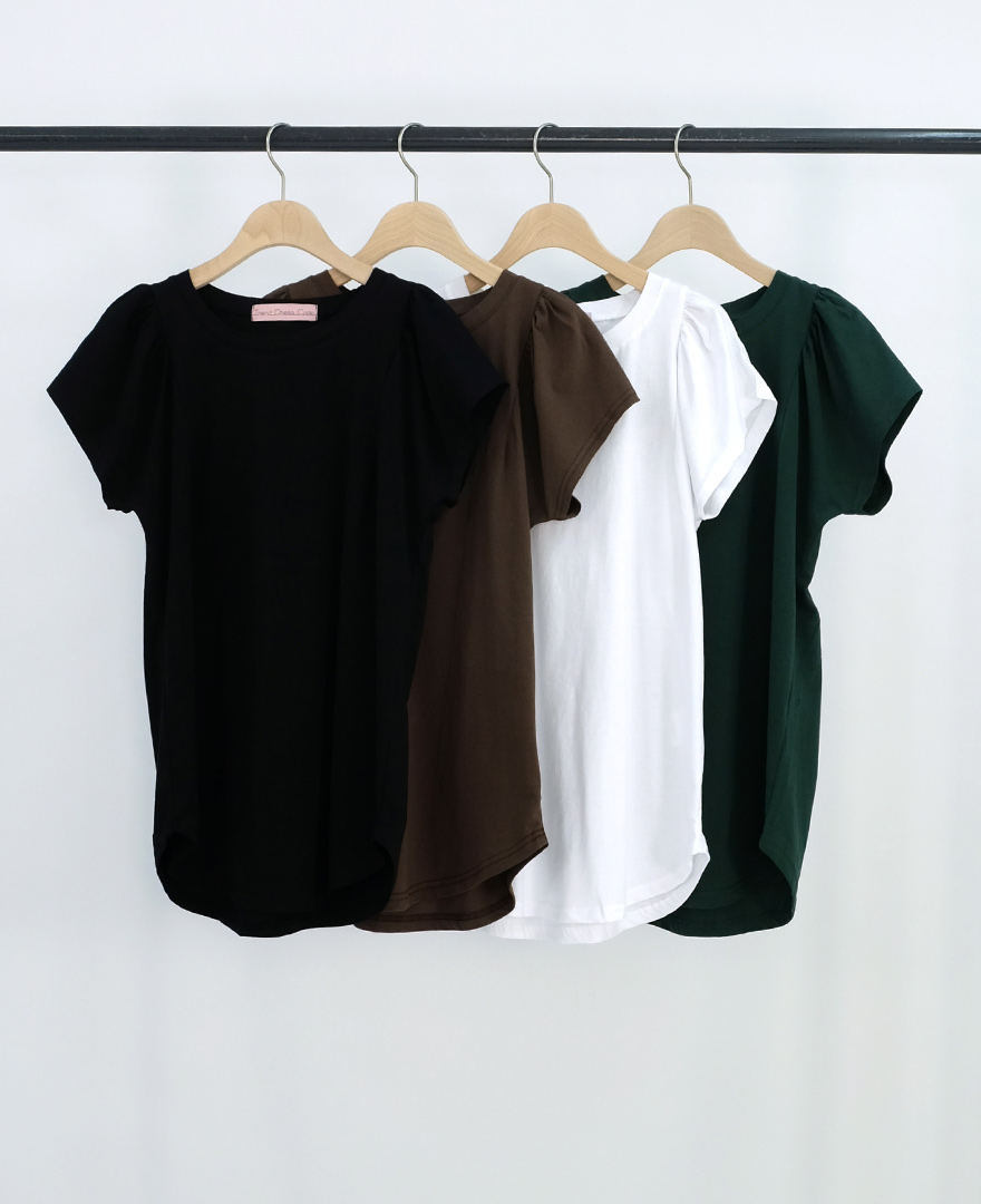 お店でも大人気の肩タック半袖クルーネックTシャツ。