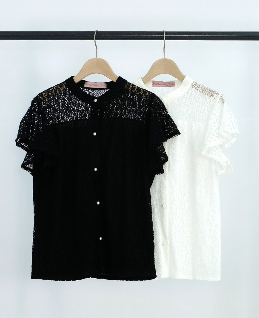 夏夏はしていないけど、涼しげなレースが魅力の◆小花レースボタンブラウス◆。
