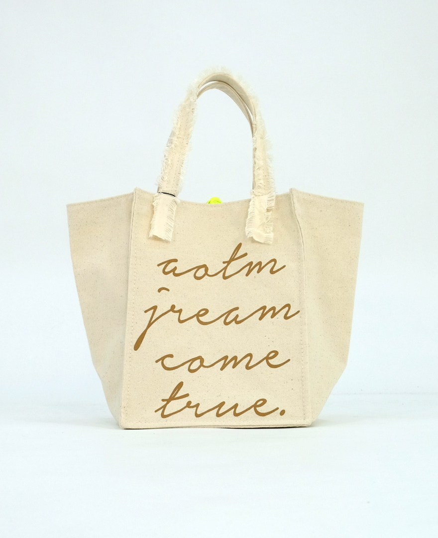レタードスクエアトートバッグは、黄色のリボンテープがアクセント。
