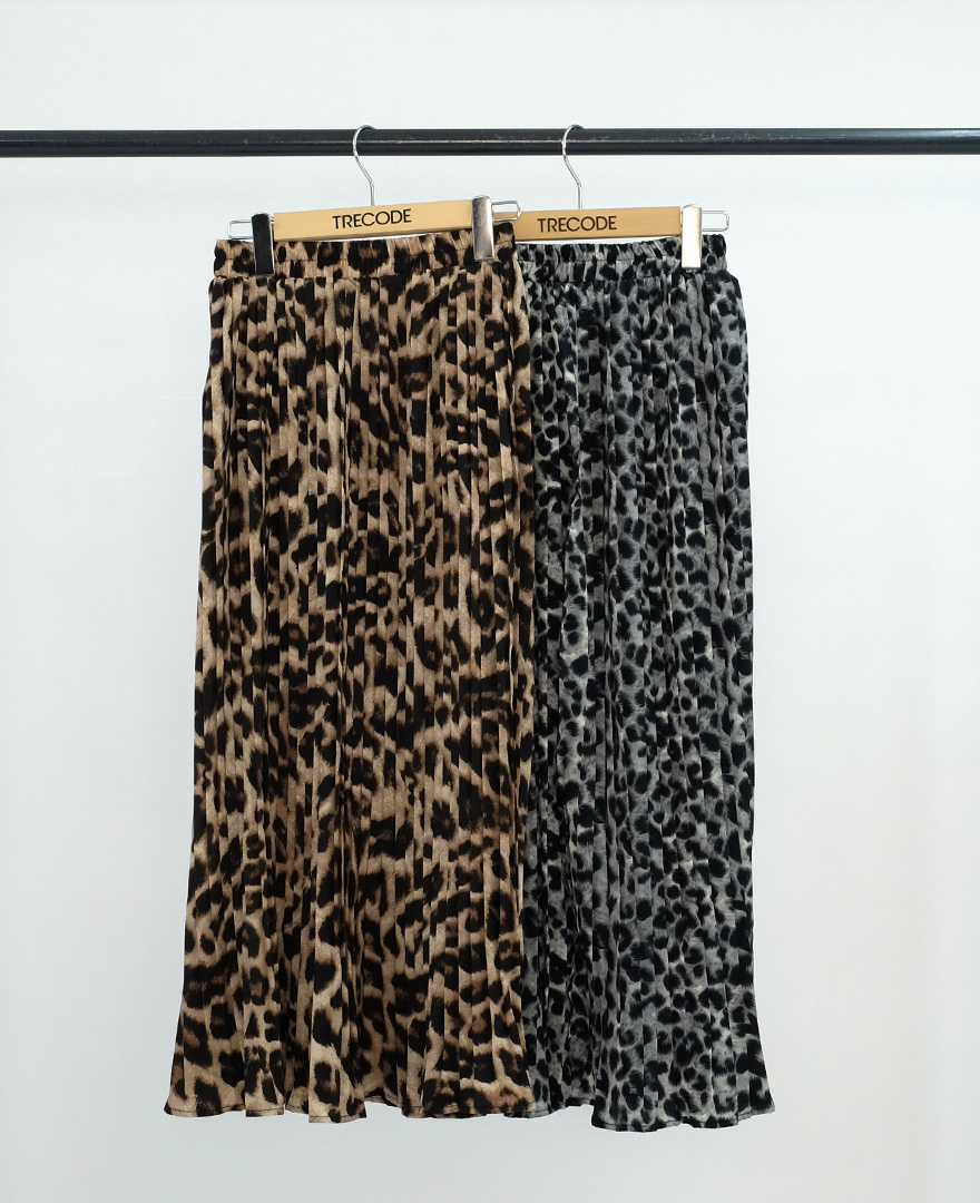 今季トレンドのヒョウ柄は、ソフトプリーツなので、下半身の肉感を拾わないサイズ感も嬉しいポイント。