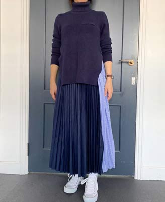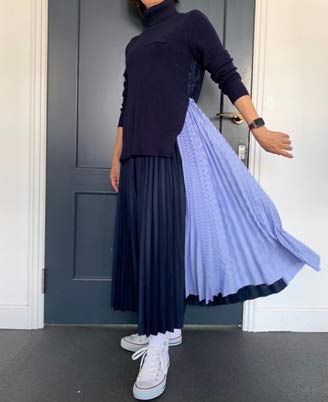 続いてこちらも明日のコーデに悩まない、タートルネックタイプの合体ワンピ。