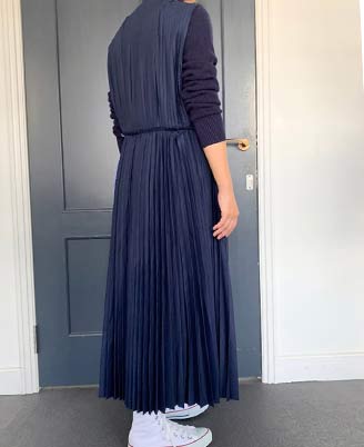 スカート部分や背中にこまかく取られたプリーツや切りっぱなしの仕上げなど、枠にはまらない細部へのこだわりも、見た目だけでなく着ている自分が楽しめそうなワンピースです。