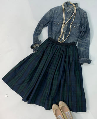 タータンチェック ブラックウォッチの2柄をトレコードスタッフがリアルにコーディネート。