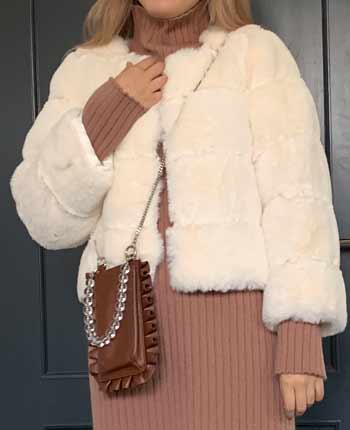 <2>ふわふわ もこもこのエコファーショートブルゾン。