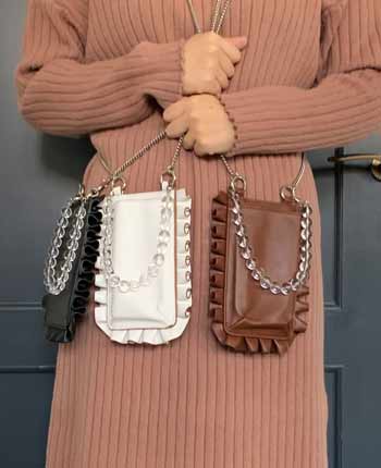 <1>レザー調のビーズハンドルと、シルバーチェーンの2Wayミニバッグ。
