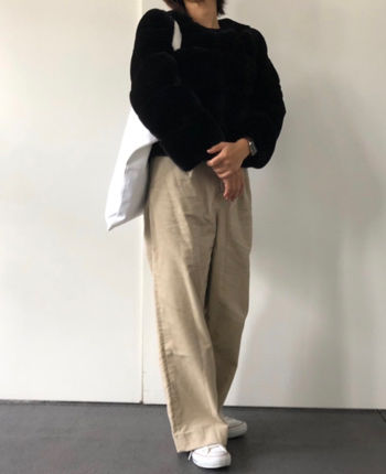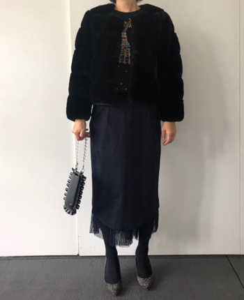 ふわふわブルゾンのブラックを妄想で、着まわしてみました。