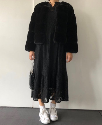 レースティアードワンピにブルゾンを羽織って、