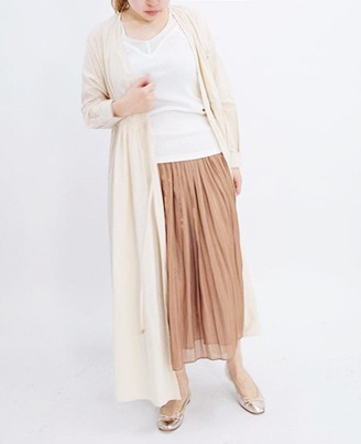 今の季節だと中にノースリーブのトップスにデニムやシフォンスカートを涼し気に合わせたいですね。