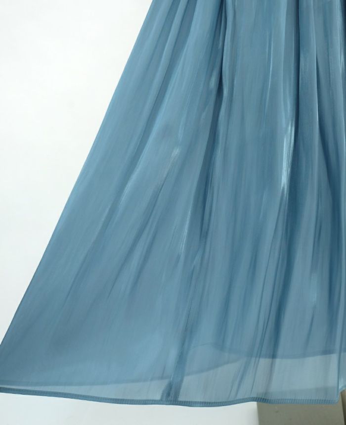 マキシはしっかり長さがあっても光沢とエアリーな質感で重たく見えません。