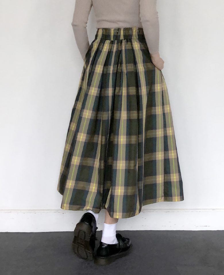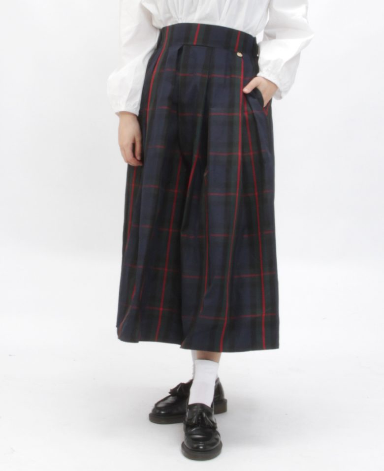 クラシカルな雰囲気で、チェックスカートでも大人っぽく穿いていただけます。