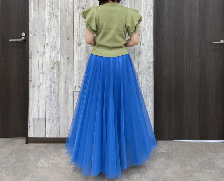 今回は受注限定のフレアチュールスカートのカラー、着こなしを詳しくご紹介します。