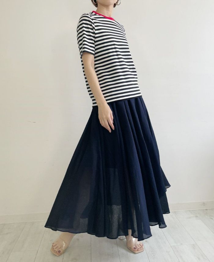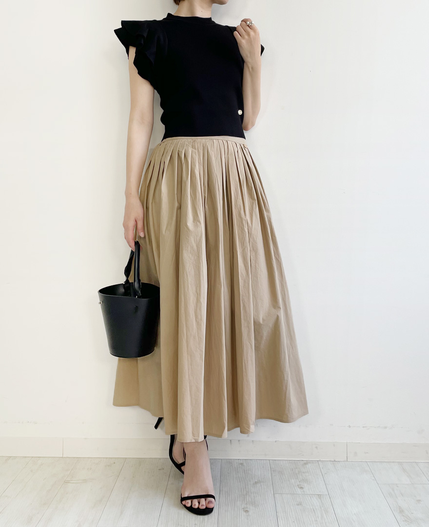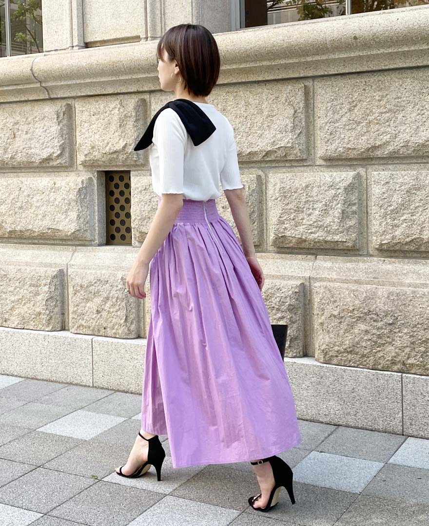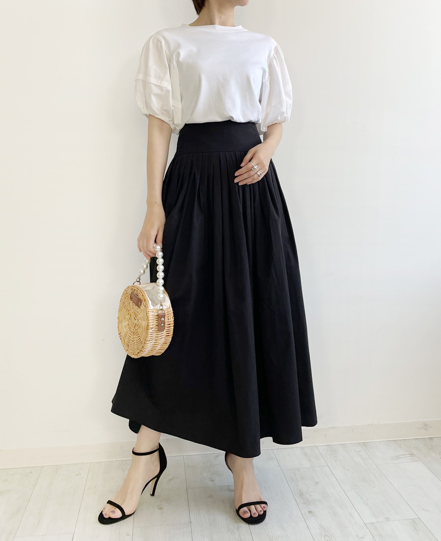 長め着丈のスカートなので、ヒールを合わせて大人きれいめお出かけコーデがおすすめ♪