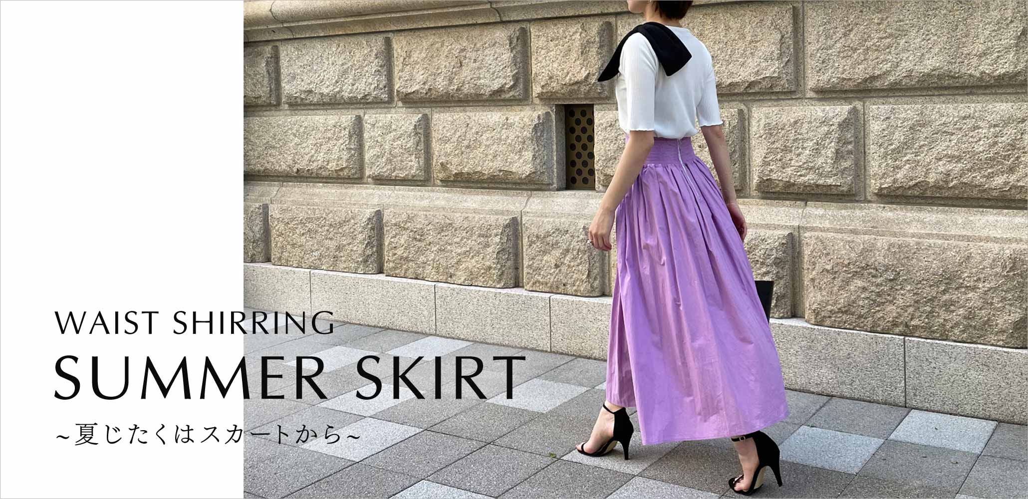 カラーバリエーションが豊富で夏の時期にも着映えする”ウエストシャーリングサマースカート”