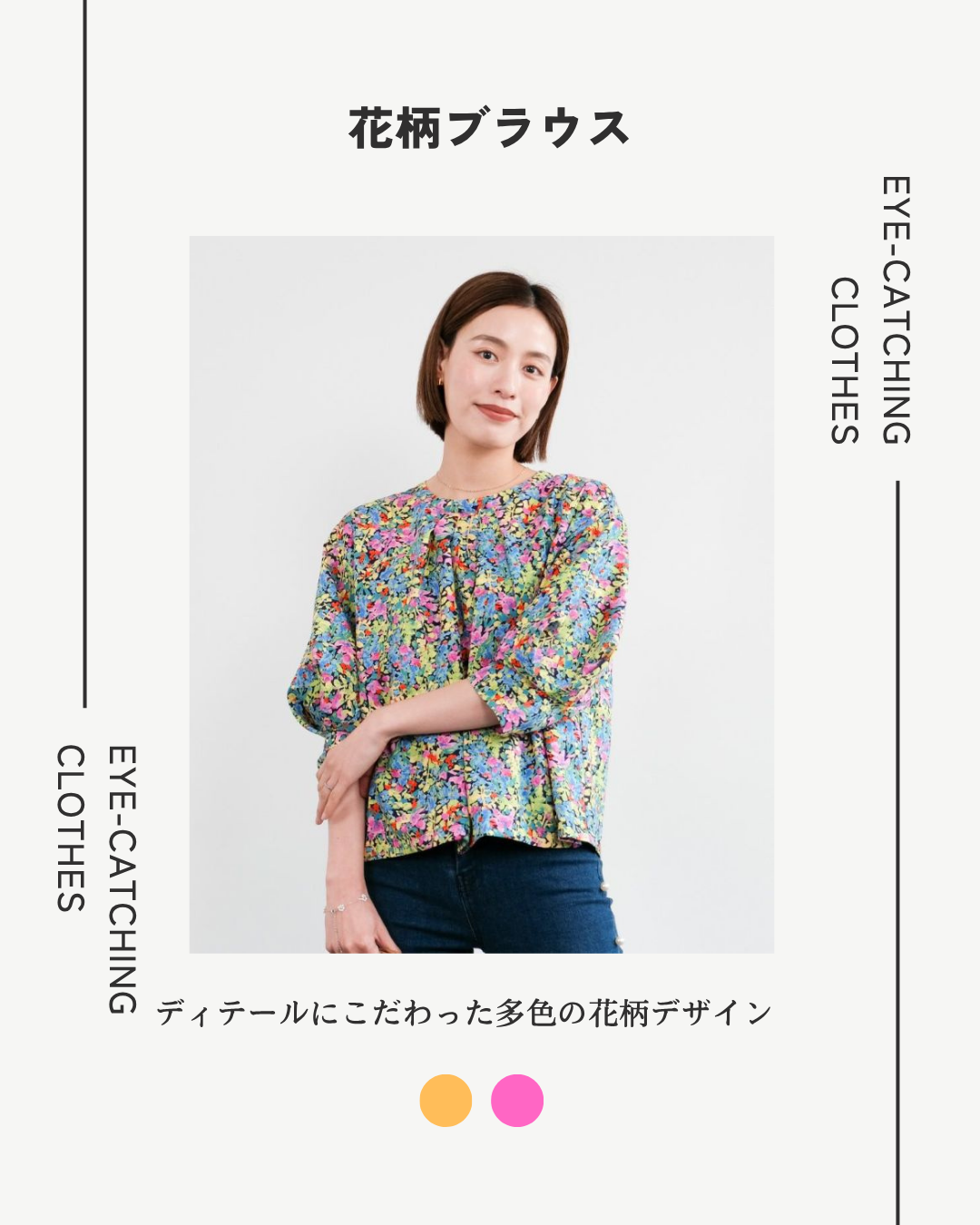 シンプルなボトムに合わせるだけで、きちんと見えて華やかな印象に。普段着でも合わせやすいブラウス。