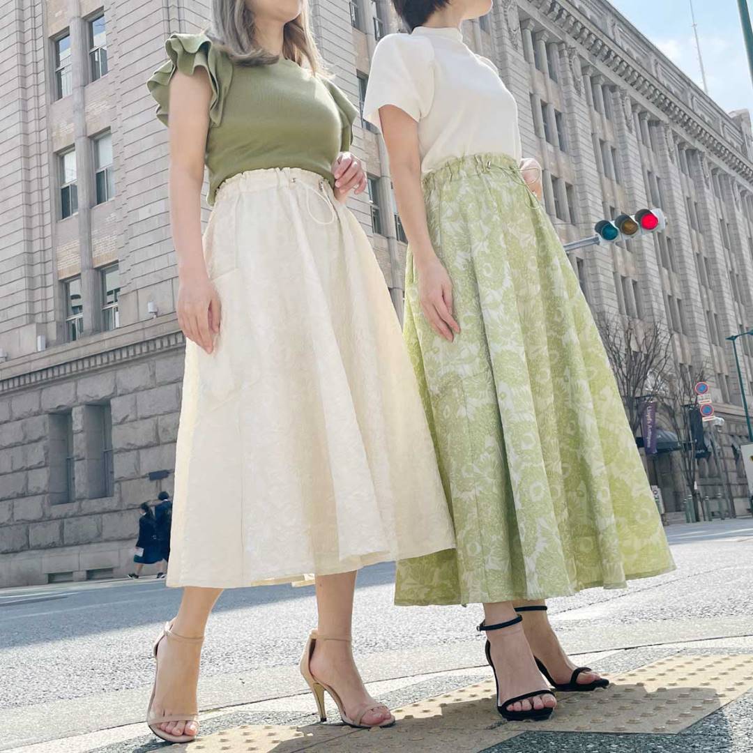 パステルカラーのスカートはどんなアイテムとも絶妙にマッチし、お洒落さんには欠かせないアイテム。