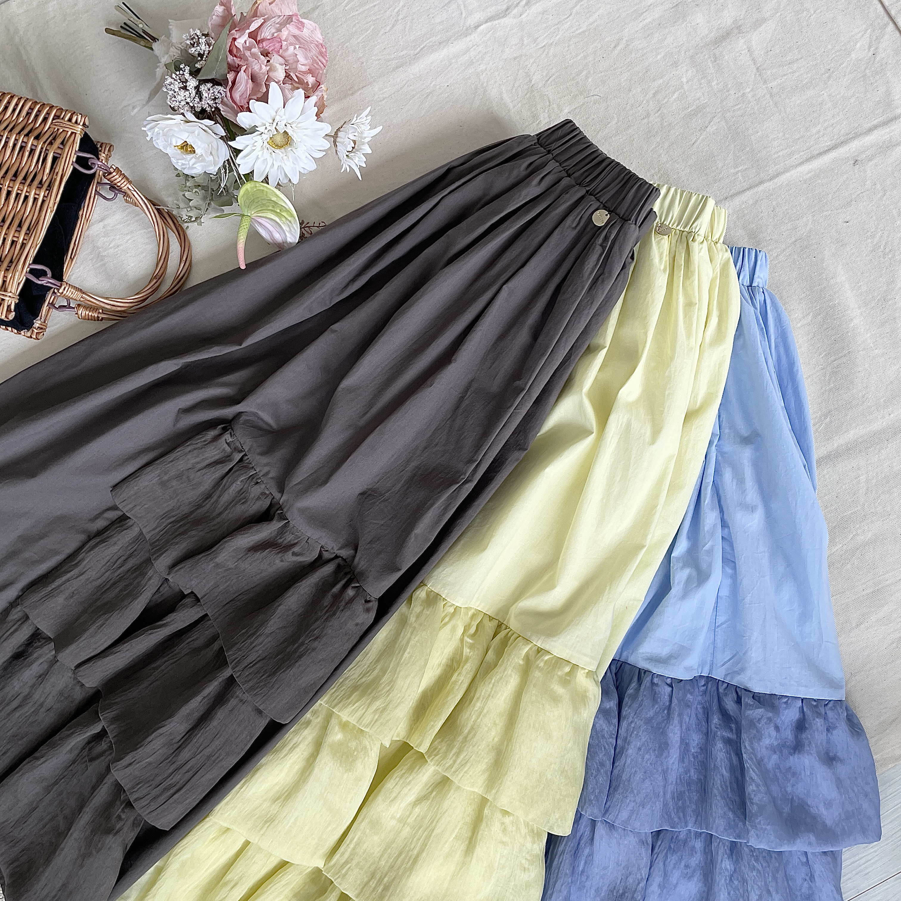 片側についた段々フリルでコーデが華やぐフレアスカート。