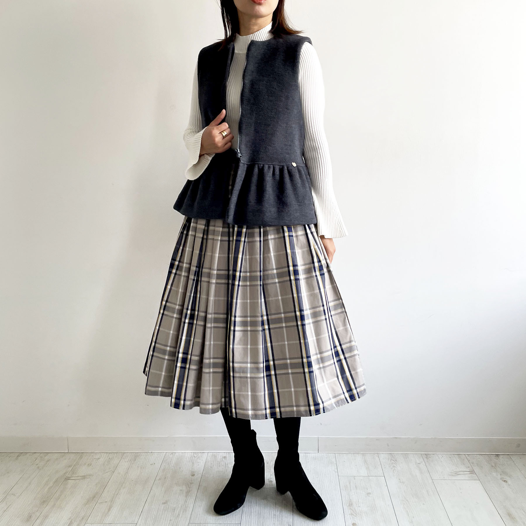 SKIRT:神戸・山の手チェック柄スカート ネイビー×グレー/ミモレ丈