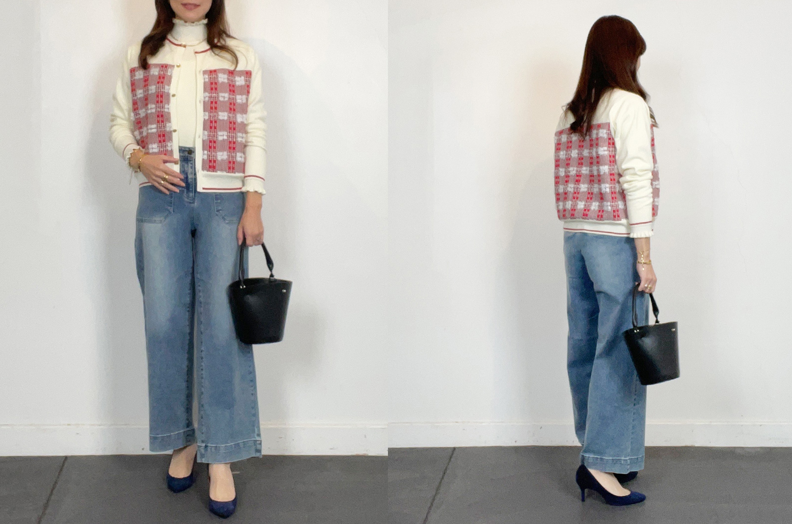 普段のお洋服で華やかさを出したいときにオススメなツィードカーディガン。