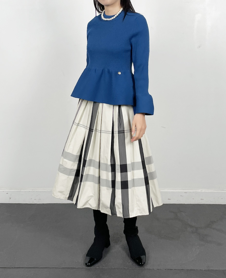 | ペプラムニット/ブルー | 裾フリルリブニット/ホワイト |