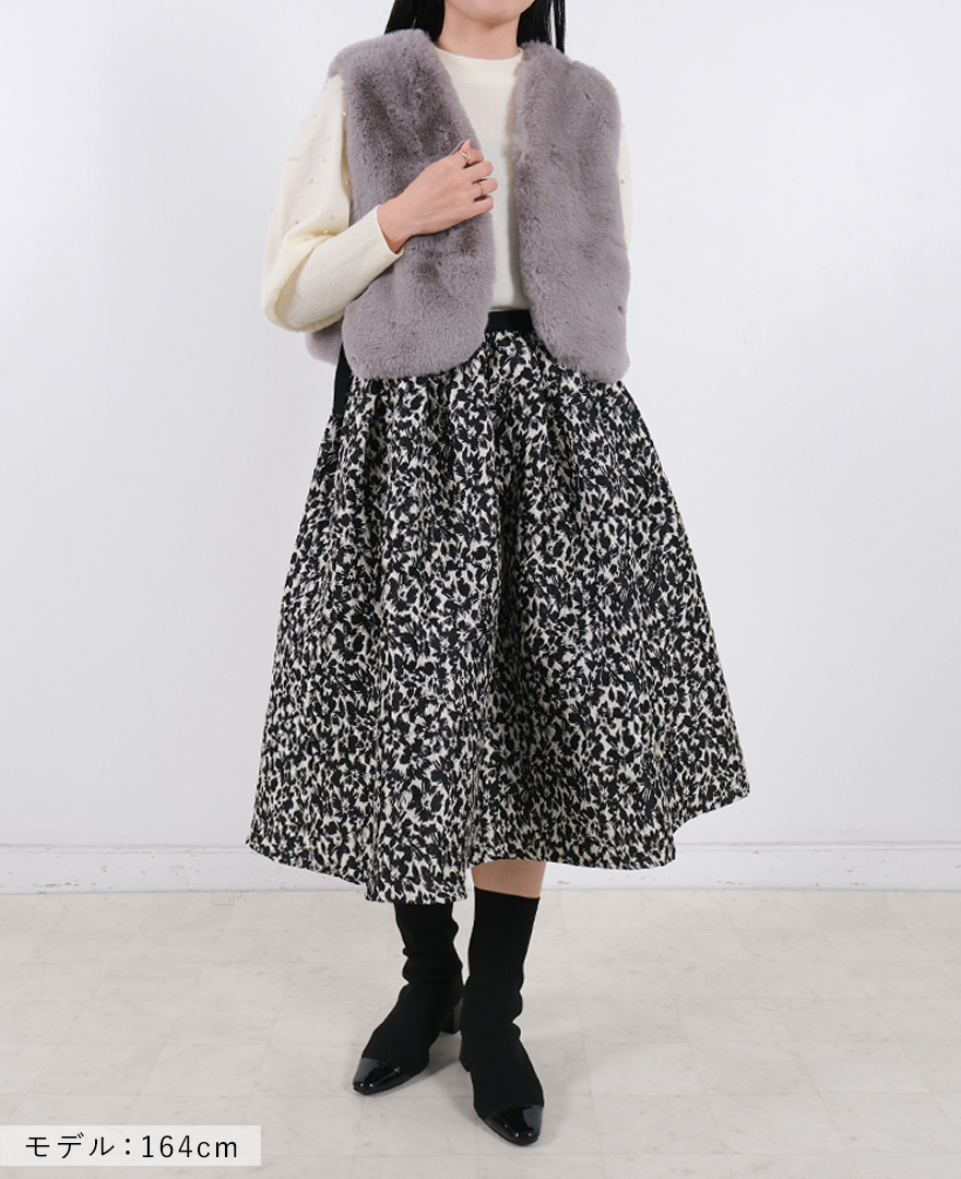 スカート:神戸・山の手フラワージャガードスカート ブラック/ミモレ丈