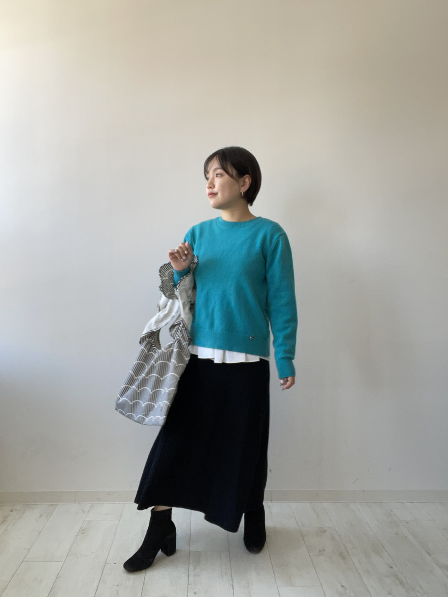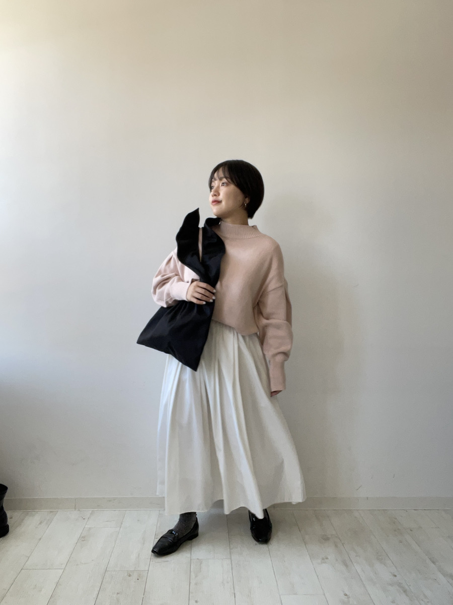 少し薄手のニットなので、全てトップスインしても着崩れることなく、スタイリングができおすすめです!