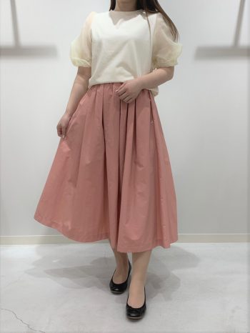スタッフ身長:157cm スカート/ピンク、トップス/現在店舗のみ取り扱い