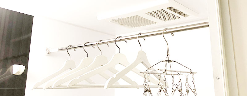 お風呂場は換気扇がついているので、風通しをよくして洗濯物を乾かしやすくできます。 ご自宅のバスルームに浴室乾燥が付いている場合は、早くしっかり乾かすことができるので是非活用してくださいね。