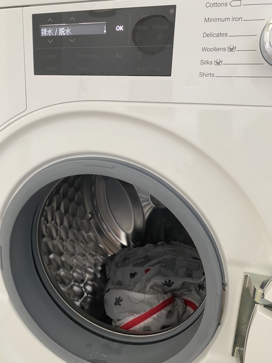 洗剤、柔軟剤を入れてドライコースで洗う