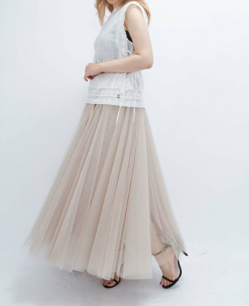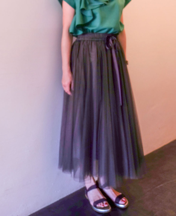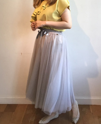 マキシより13㎝短い、神戸・山の手フレアチュールスカートロング丈です。
