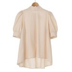 大きめリボンが華やかなアクセントになるボウタイブラウススタイル。